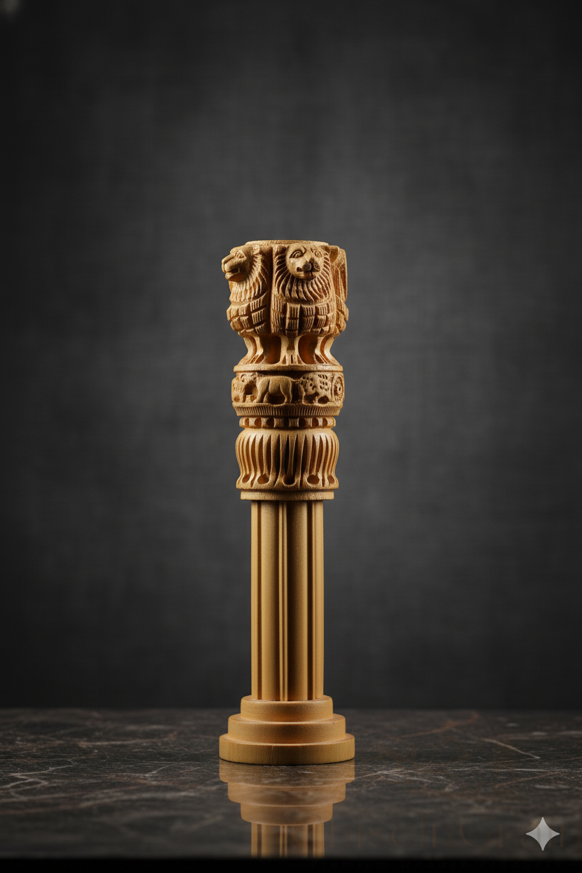 The Sarnath Legacy: Handcrafted Wooden Ashoka Stambh (Lion Capital of Ashoka)